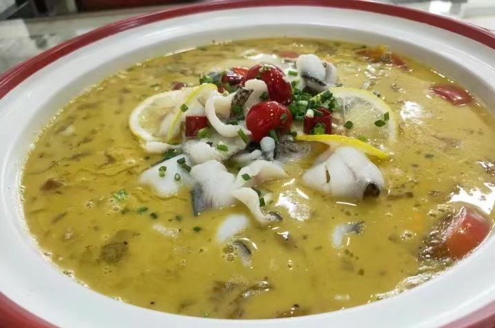 金汤酸菜鱼,杂辣椒土豆丝,辣椒炒肉,手抓牛骨头,茄子烧豆角,青辣椒炒鸡蛋,肉沫外婆菜,